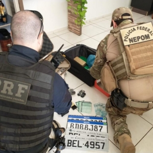 A operação conjunta da PF e da PRF cumpriu mandados de busca e apreensão em outros três locais, todos na região oeste do Paraná.