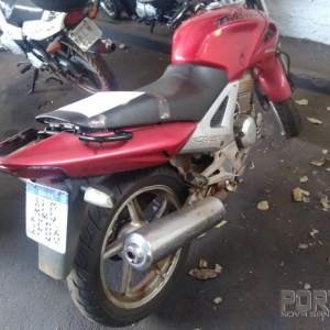 Uma equipe da ROTAM realizava diligências a fim de esclarecer a autoria do roubo que havia ocorrido na parte da tarde, quando na Avenida Primeiro de Maio, quando foi abordado a pessoa de 27 anos de idade, sendo este já conhecido no meio policial, o qual estava empurrando uma motocicleta Honda/Cg 125 Fan, que foi realizado abordagem e o mesmo não possuía a documentação em mãos, dizendo que acabara de comprar a referida motocicleta e levaria a equipe até a residência onde estaria a pessoa quem vendeu e o documento.