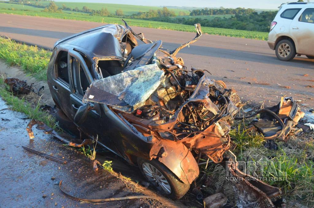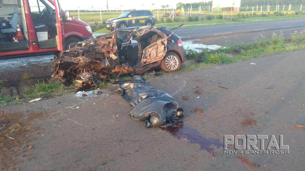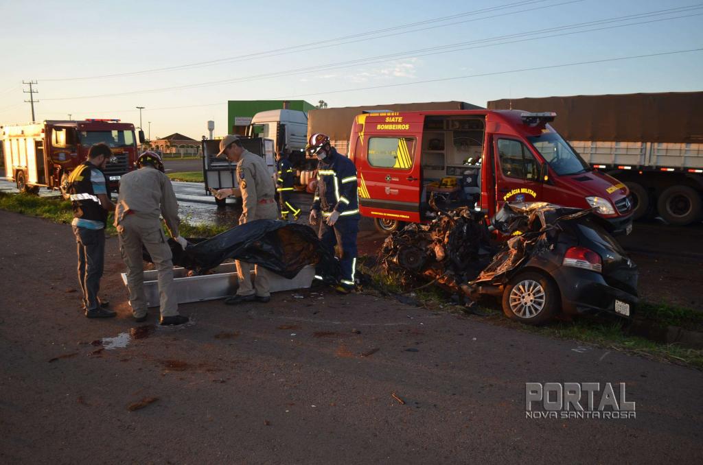 Um acidente fatal foi registrado por volta das 05h50 desta manhã na BR 163, trecho que liga Toledo à Marechal Cândido Rondon, em frente à indústria Primato e envolveu o Fiat Palio, placas BES 1731 de Toledo, conduzido pelo jovem Thiago Alves e a carreta Volvo Bitrem, placas APO 024 de Pato Branco, conduzida por Jorge Antônio de Goes.