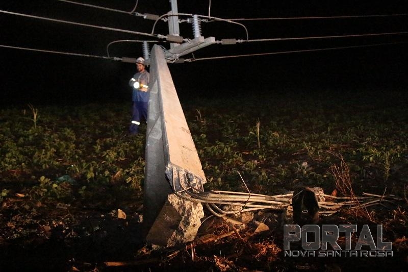 O poste quebrou e ficou praticamente em cima do Vectra sendo suportado apenas pelos fios de alta tensão.