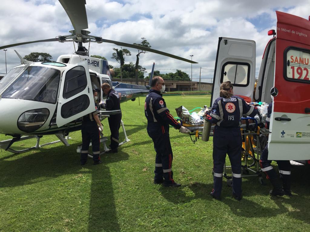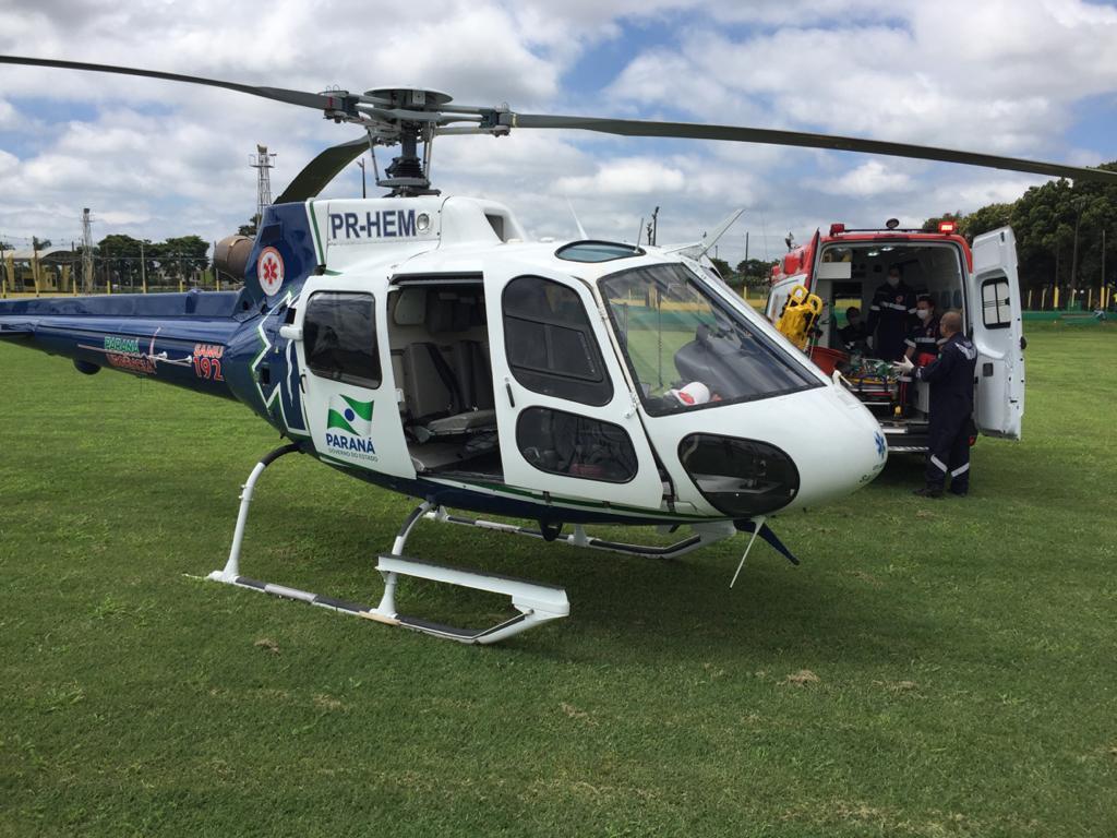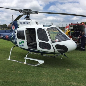 Após a colisão envolvendo um Corsa e duas motos de Palotina na rodovia que liga Nova Santa Rosa a Marechal Rondon, onde três pessoas ficaram feridas, um deles em estado grave, o motociclista foi transferido para Cascavel com o helicóptero do Samu.