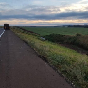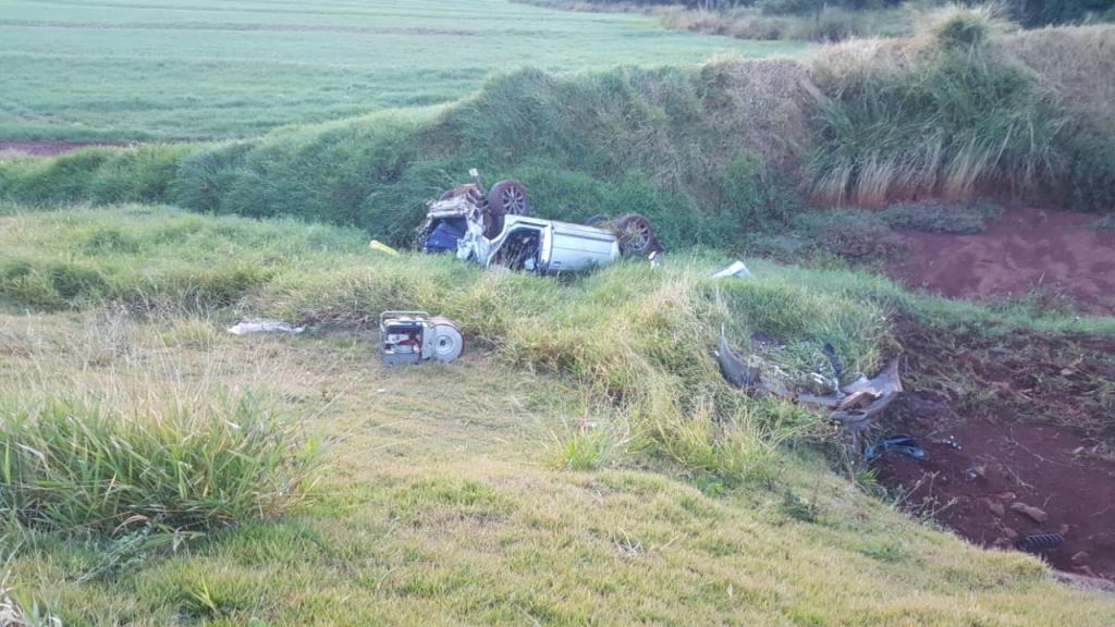 Um capotamento foi registrado na manhã deste sábado (21), no Contorno Oeste, a alguns quilômetros da rodovia BR-467, em Cascavel.