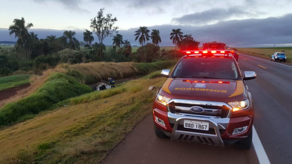 Chegando ao local, os socorristas constataram que um homem estava morto no veículo e outra pessoa apresentava ferimentos moderados.