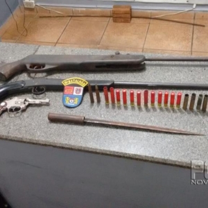 Em continuidade os envolvidos juntamente com as armas foram encaminhados para a 47º para as medidas cabíveis. Também foi informado o conselho tutelar.