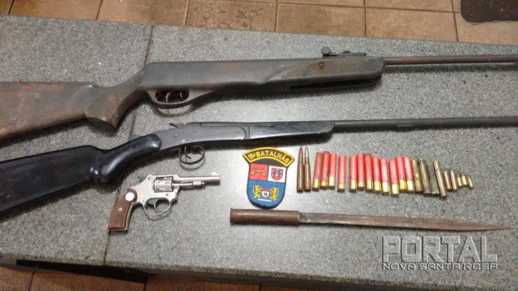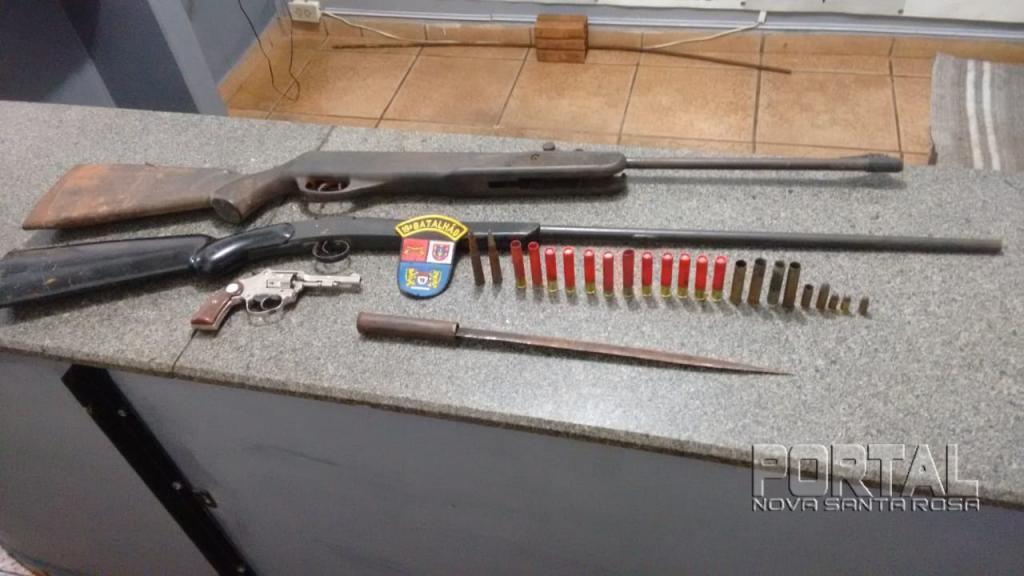 Por volta das 22h45 da noite desta sexta-feira (12), compareceu no Destacamento de Polícia Militar de Nova Santa Rosa uma moradora da cidade e relatou aos policiais, que ela, seu filho de oito anos, e sua mãe tiveram que sair correndo de casa pois seu pai, estava descontrolado, empurrando, dando tapas e as ameaçando com armas de fogo e um punhal.