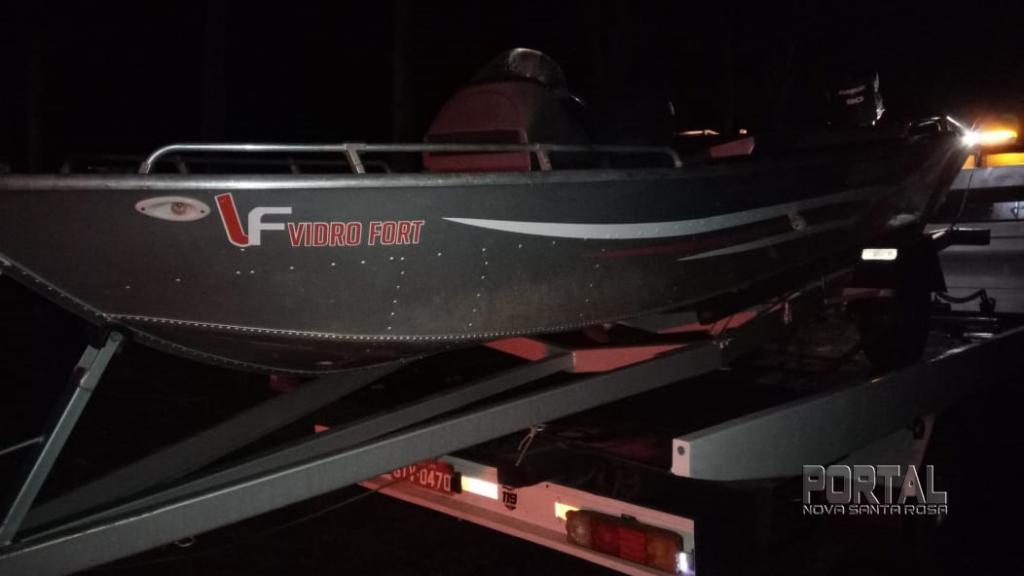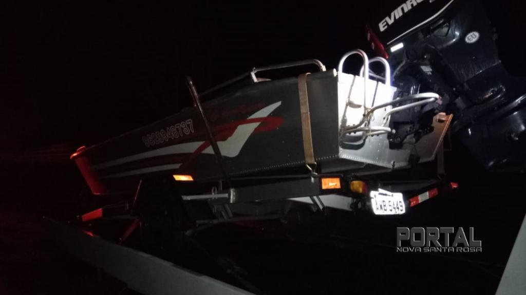 Os policiais iniciaram buscas juntamente com o grupo ROTAM e na PR 396, nas proximidades do pesgue e pague Pantanal, recuperou o reboque com a lancha e motor que foi guinchada e entregue ao proprietário.