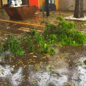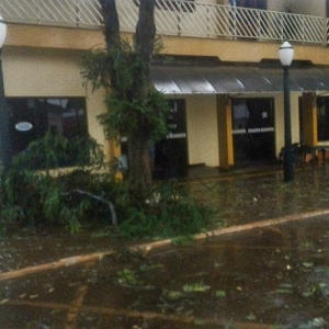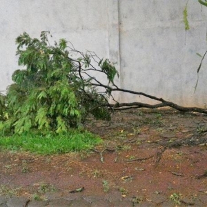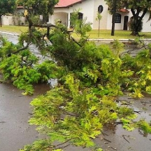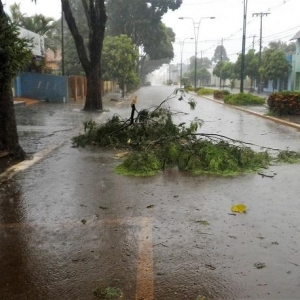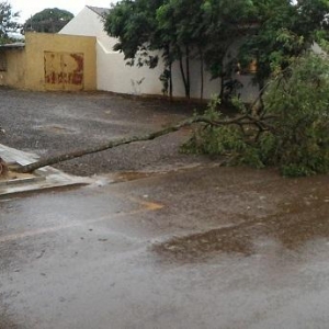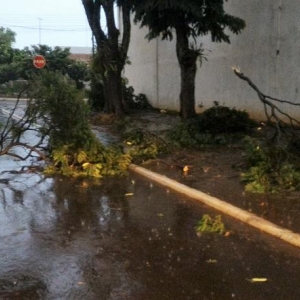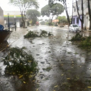 Algumas ruas ficaram alagadas com o volume excessivo de chuva, e uma equipe da Prefeitura Municipal esteve trabalhando para retirar os galhos que estavam atrapalhando o trânsito na área central da cidade.