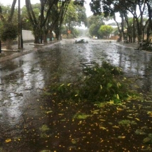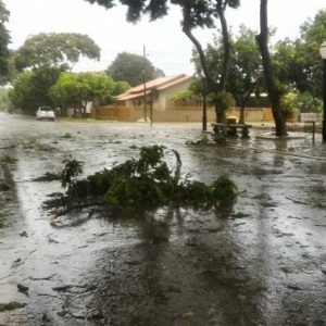 Algumas ruas ficaram alagadas com o volume excessivo de chuva, e uma equipe da Prefeitura Municipal esteve trabalhando para retirar os galhos que estavam atrapalhando o trânsito na área central da cidade.