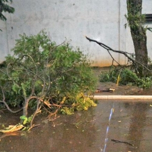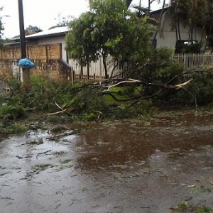 As fortes chuvas e ventos, que ocorreram no início da noite desta quinta-feira (09) em Nova Santa Rosa, resultaram em muitos galhos quebrados, sujeira pela cidade, pequenas árvores que caíram, além de uma residência na Avenida Tucunduva, proximidades da Escola Municipal Getúlio Vargas, que teve a garagem totalmente destelhada com a força dos ventos.