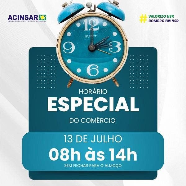 No próximo sábado, dia 13 de julho, os estabelecimentos comerciais de Nova Santa Rosa estarão atendendo em horário especial.