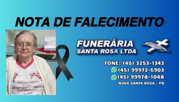 O corpo será velado a partir das 11h00 na Igreja Católica Santa Rosa de Lima e a partir das 16h00 haverá missa de corpo presente e logo após o sepultamento no cemitério municipal de Nova Santa Rosa.
