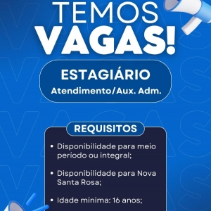 A Pontocom Telecom abre uma oportunidade de trabalho para Nova Santa Rosa na função de estagiário.