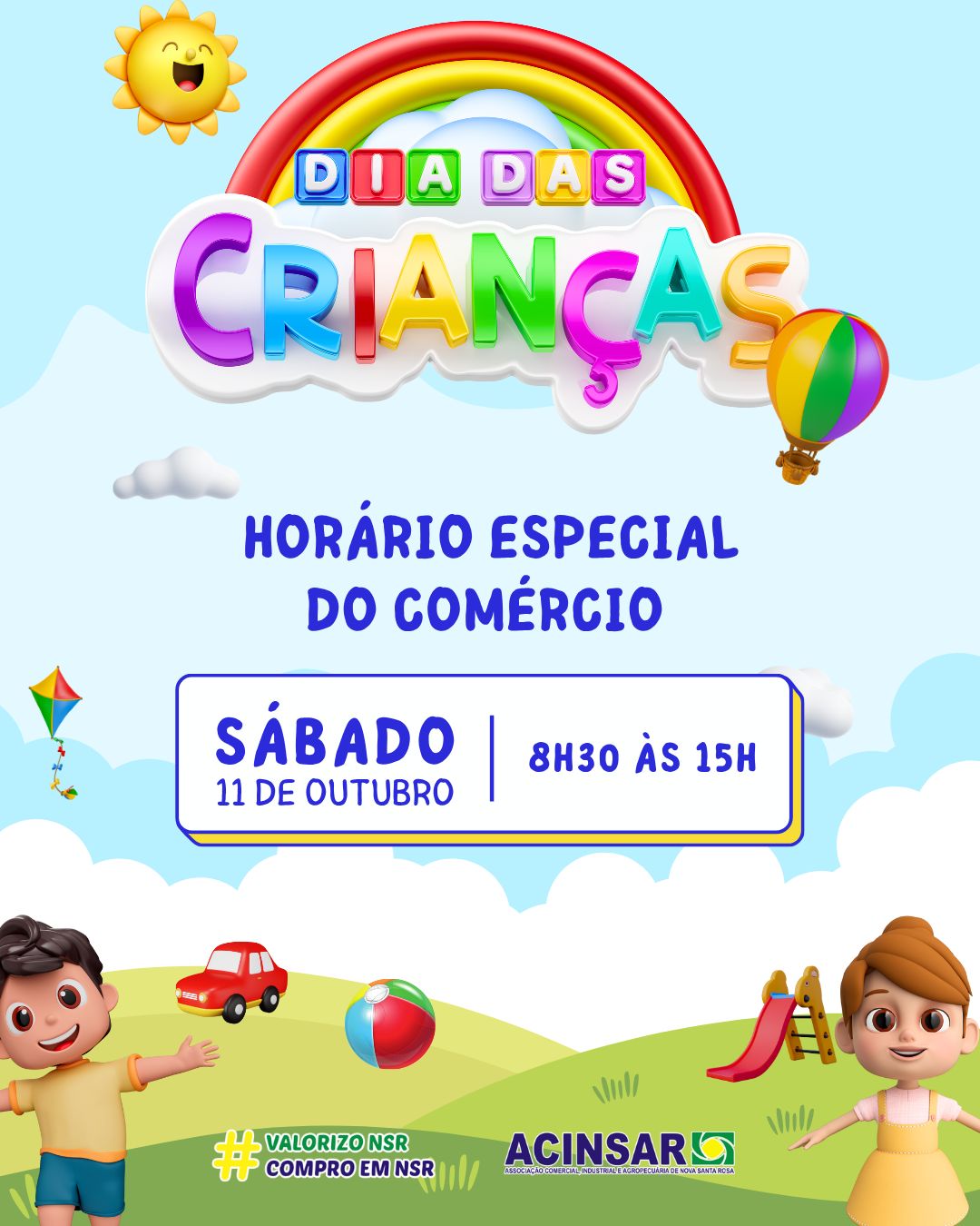 Portanto, aproveite o horário estendido neste sábado, garanta o presente dos pequenos e contribua para o fortalecimento do comércio de Nova Santa Rosa.