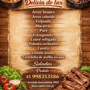 Agora, se o dia está corrido e a opção for marmita, é só entrar em contato pelos telefones (45)2032-0716 ou (45)99835-3586. A equipe prepara tudo com carinho para você levar um almoço quentinho e saboroso.