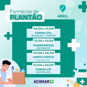 - 27/04 a 03/05 – FARMA VIP – (45)9 9854-0203.