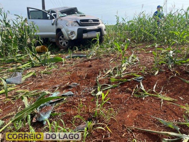 De acordo com informações apuradas no local, uma caminhonete Toyota Hilux seguia no sentido Esquina Céu Azul–Santa Helena, quando teria sido fechada por outro veículo. A manobra fez com que o condutor perdesse o controle da direção, resultando no capotamento.
