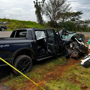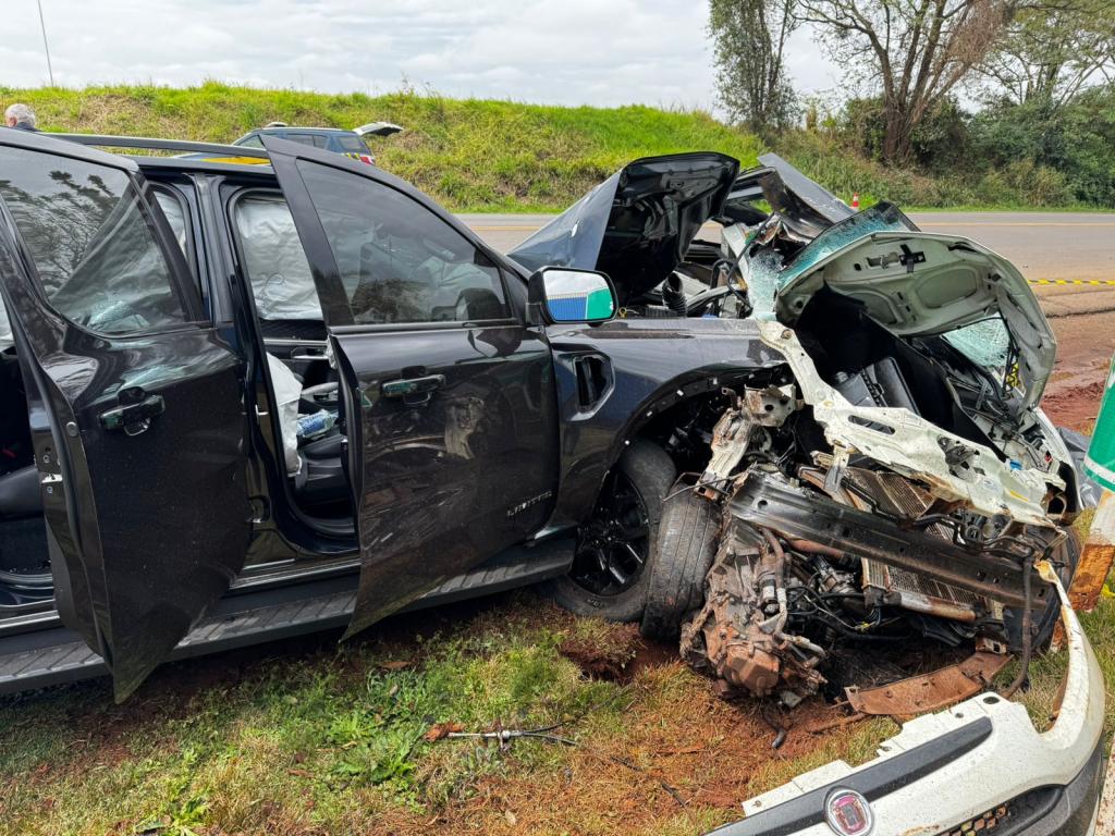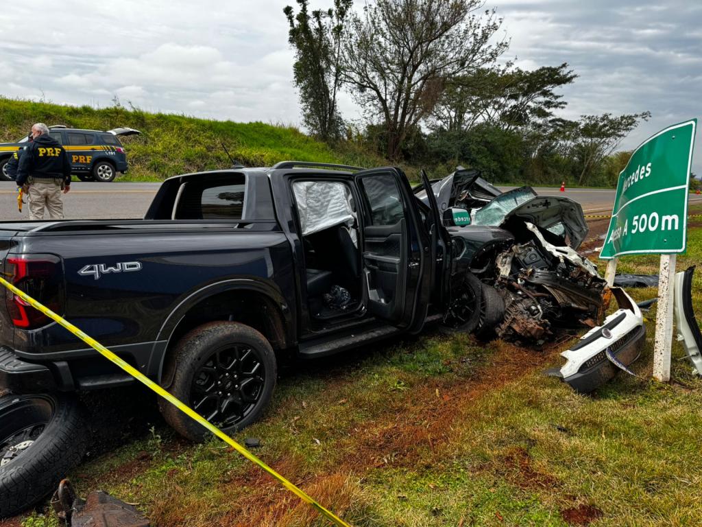 Com o impacto, os dois veículos ficaram completamente destruídos. A caminhonete chegou a invadir parte do carro de passeio, e os destroços se espalharam pela pista. A distância entre o ponto da batida e o local onde os veículos pararam foi de aproximadamente 60 metros.