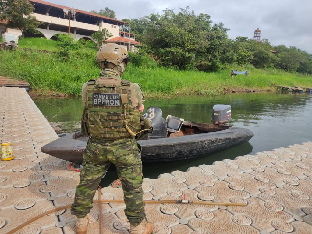 Equipes do Batalhão de Fronteira da Polícia Militar, pelotão C.O.B.R.A, foram verificar denúncias de tráfico de entorpecentes em um porto clandestino na região de Pato Bragado, momento em que localizaram os suspeitos, deram voz de abordagem e os mesmos se evadiram numa embarcação carregada.