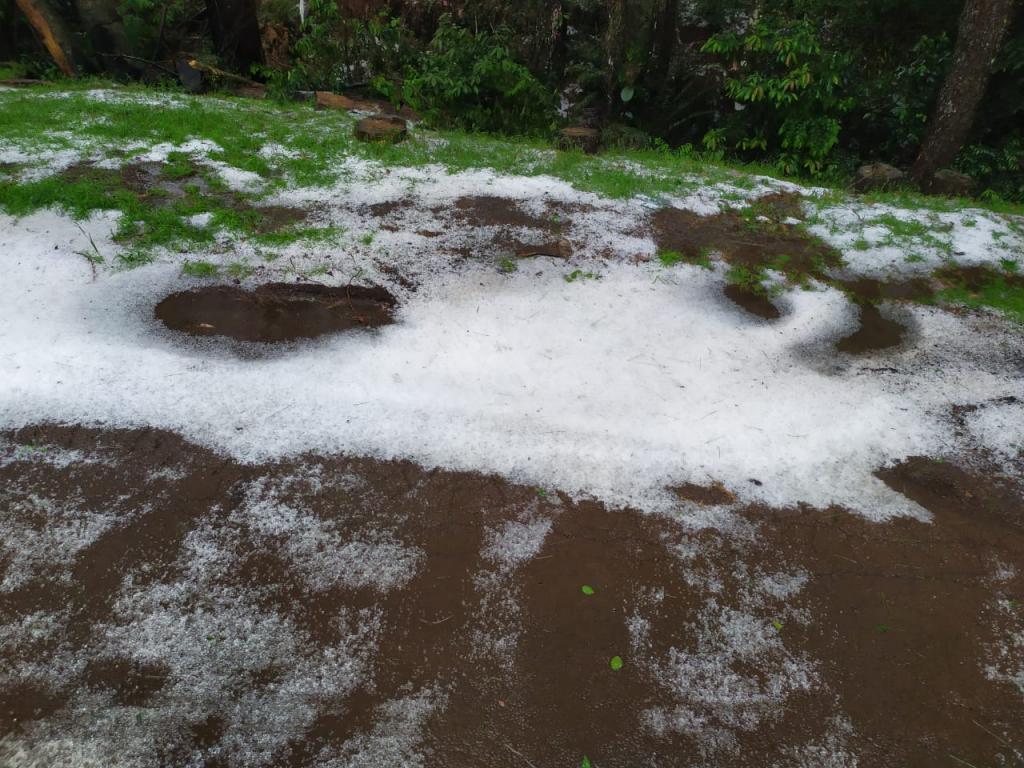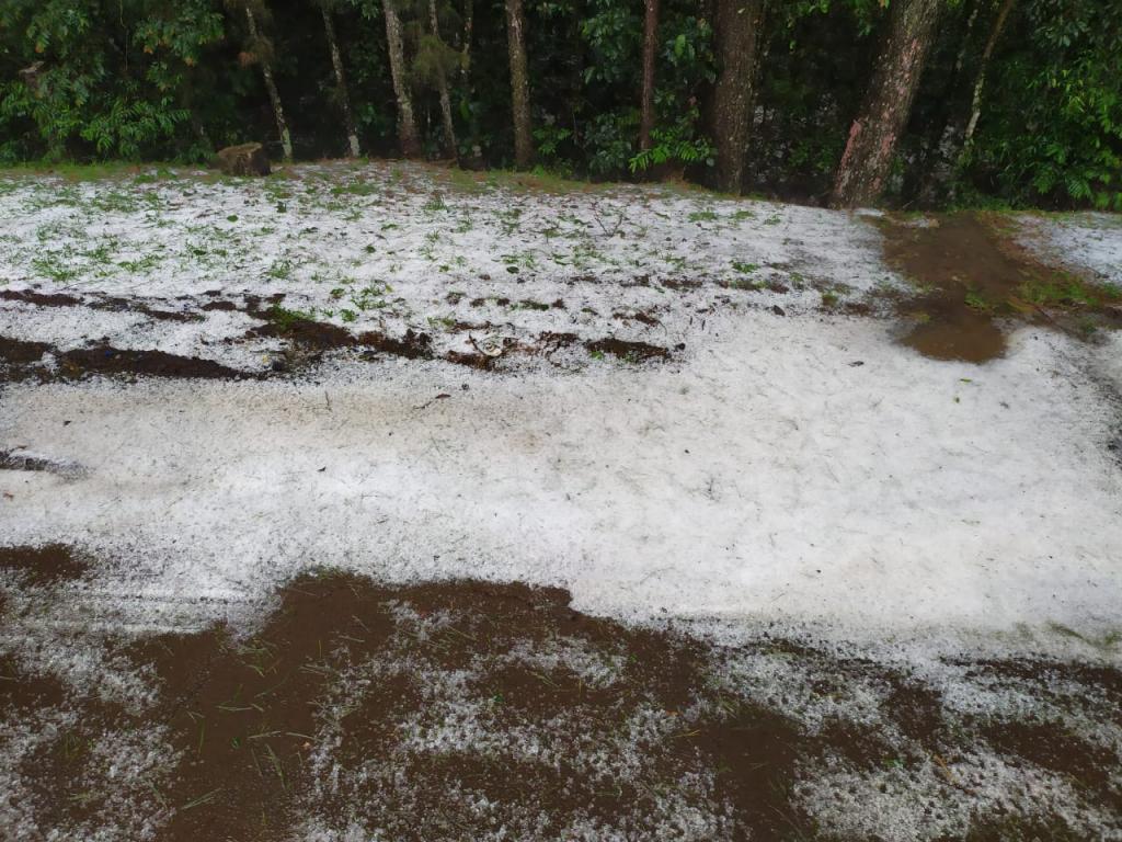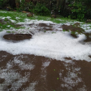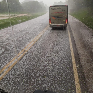 No início da tarde desta terça-feira, uma forte chuva de granizo atingiu o município de Diamante do Sul, próximo a BR-277.