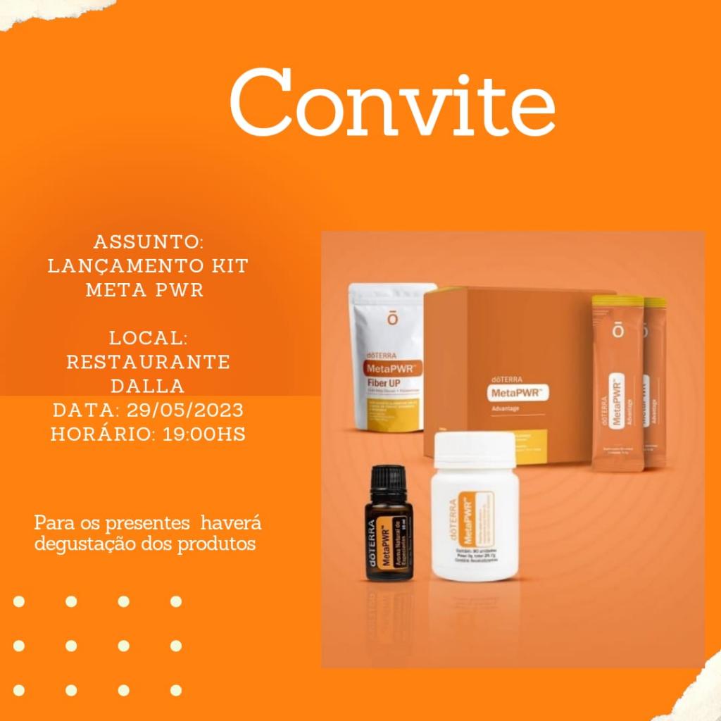 Na segunda-feira dia 29 de maio será lançado o Kit Meta PWR, produtos da Linha doTERRA, na Pizzaria e Restaurante Dalla as 19h00, todos estão convidados. Para os presentes haverá degustação dos produtos.