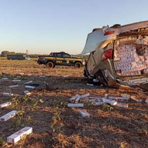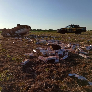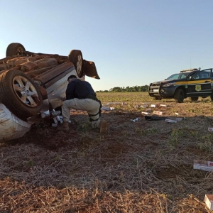 Em certo momento, já na BR 163, sentido Guaíra, o condutor acessou uma área de lavoura às margens da rodovia, perdendo o controle do veículo e capotando diversas vezes.