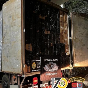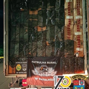 Após diligências, foram localizados aproximadamente 14.000 (catorze mil) pacotes de cigarros da marca "Eihgt" e "TE", sendo encaminhados para Receita Federal de Guaíra.