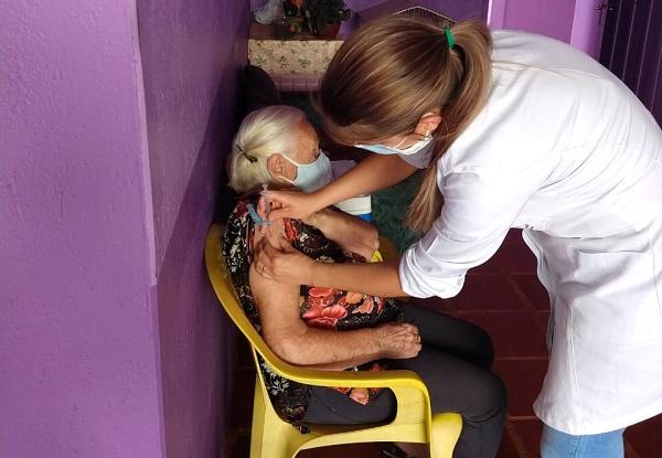 O último lote de vacinas recebido foi destinado a idosos com 90 anos ou mais. “Nesta faixa-etária, temos registrados 24 idosos, além disso tivemos recusas da vacina, por isso estamos fazendo a busca ativa e baixando a idade conforme o saldo de vacinas. Tanto na sede do município quanto nos distritos estamos fazendo o agendamento para vacinação dos idosos e indo diretamente nas residências para que eles não precisem se deslocar até a Unidade Básica de Saúde. Isso também nos auxilia para que não haja desperdício de doses, já que o frasco contém 10 doses com validade de 8 horas depois de aberto”, relata a enfermeira.