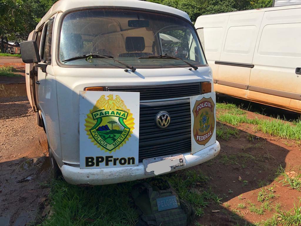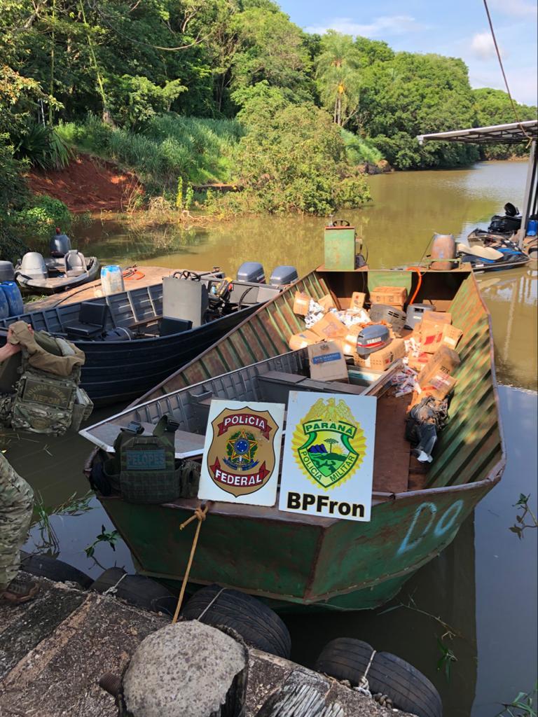 Feita a aproximação na margem brasileiro, os policiais federais encontraram o caminhão, a Kombi e as duas embarcações - sendo uma barcaça de 10m com motor 200hp e um barco de alumínio de 6m com motor 25hp - todos abandonados no porto, carregados num total de aproximadamente 300 caixas de cigarros paraguaios.