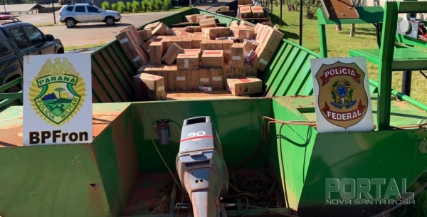 Durante patrulhamento de rotina na zona rural de Guaíra, policiais desta integração visualizaram movimentação suspeita em porto clandestino na região e resolveram realizar aproximação para fiscalização. Ao se aproximar do local, visualizaram uma barcaça descarregando ilícitos paraguaios em caminhão baú.