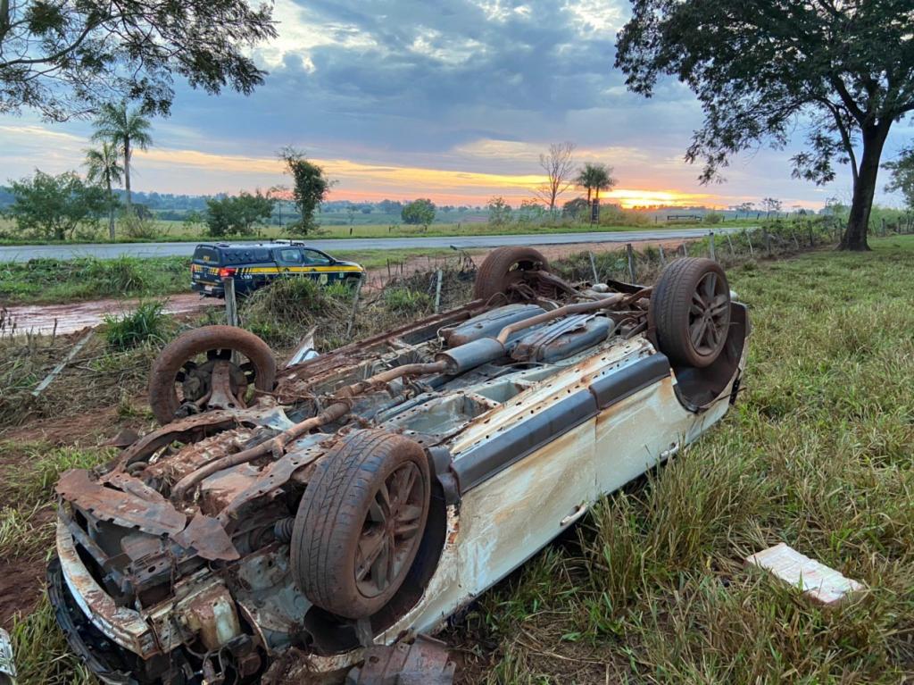 Somente após oito quilômetros de acompanhamento tático, o motorista perdeu o controle da direção, saiu de pista e capotou o veículo.