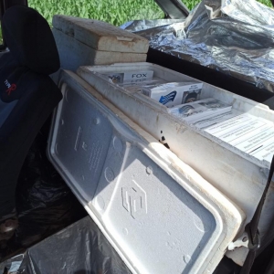 Os pacotes de cigarro estavam no porta-malas do veículo, encobertos por um papel alumínio. Também foram encontrados pacotes dentro de caixas térmicas, dissimulados como transporte de laticínios.