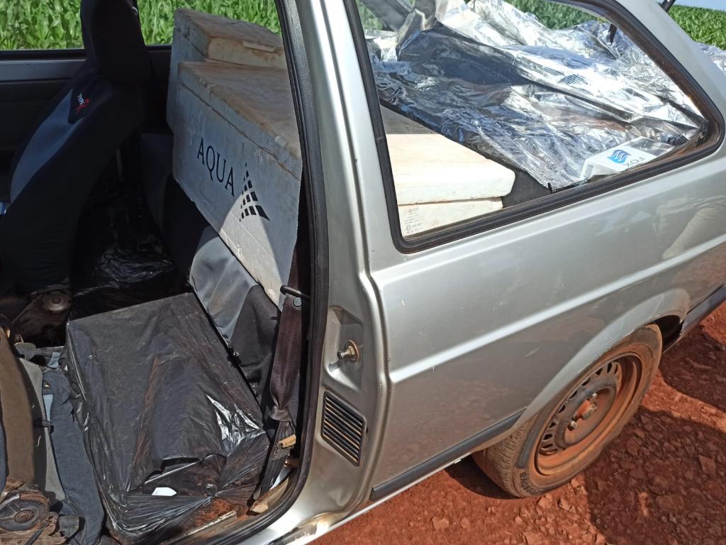 A Policia Rodoviária Federal apreendeu, na manhã de hoje (9), 4 mil maços de cigarros transportados em um Gol com placas de Foz do Iguaçu.