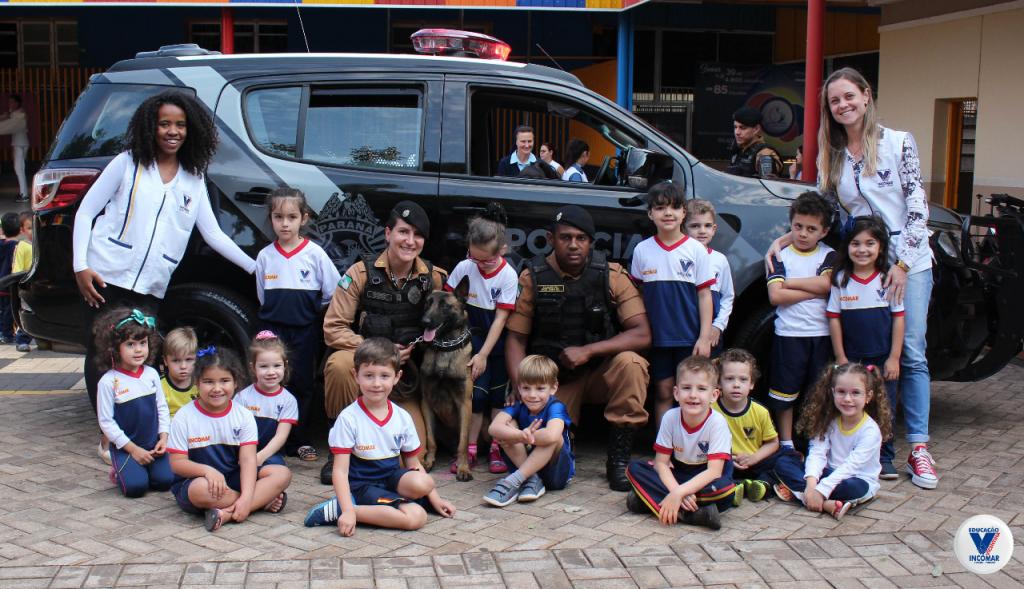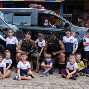 Segundo os policiais, momentos como esse são importantes para a troca de informações e também para que as futuras gerações conheçam o trabalho da polícia e se sintam incentivados a ingressar na Corporação. As crianças tiveram oportunidade de tirar fotos com toda equipe policial e ter contato com o cão.