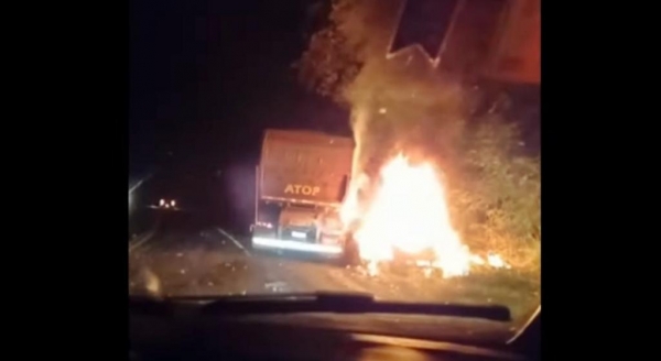 Com a colisão o veículo acabou se incendiando, e a pessoa que conduzia o veículo morreu carbonizada.