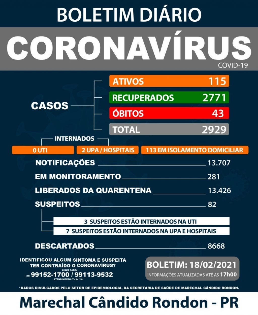A secretaria de Saude de Marechal Rondon divulfou na tarde desta qunta-feira o boletim atualizado com mais um óbito.