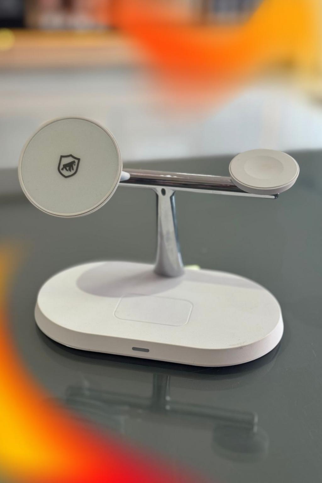 O dispositivo permite carregar smartphone, smartwatch e fones de ouvido sem fio simultaneamente, eliminando o uso de vários cabos e mantendo o ambiente mais organizado e moderno.