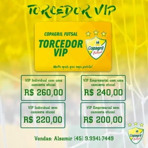 Comprando o passaporte Vip, o torcedor ganha uma carteirinha que dá direito a assistir a todos os jogos da Copagril Futsal no Ginásio Ney Braga com lugar reservado próximo à lanchonete do ginásio e estacionamento exclusivo no módulo desportivo.