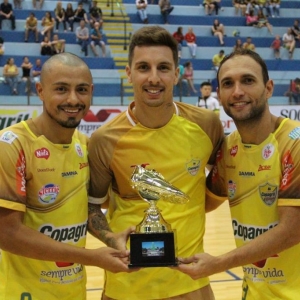 A partida de ontem foi marcada também pela entrega do troféu de artilheiro da Copa Paranaguá aos atletas Barbosinha, Jamur e Pixote, que marcaram 2 gols cada na competição a qual a Copagril Futsal foi campeão. O troféu foi entregue pelo atleta Caio Santana que representou a direção do Paranaguá.