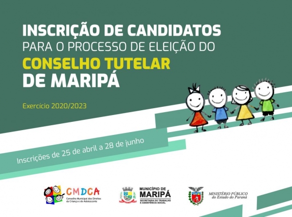 Começa nesta quinta-feira (25) o período de inscrições para os interessados em atuar como conselheiro tutelar em Maripá. O edital foi publicado pelo Conselho Municipal dos Direitos da Criança e do Adolescente (CMDCA) na quarta-feira (24), no diário oficial do Município de Maripá na internet (www.maripa.pr.gov.br).