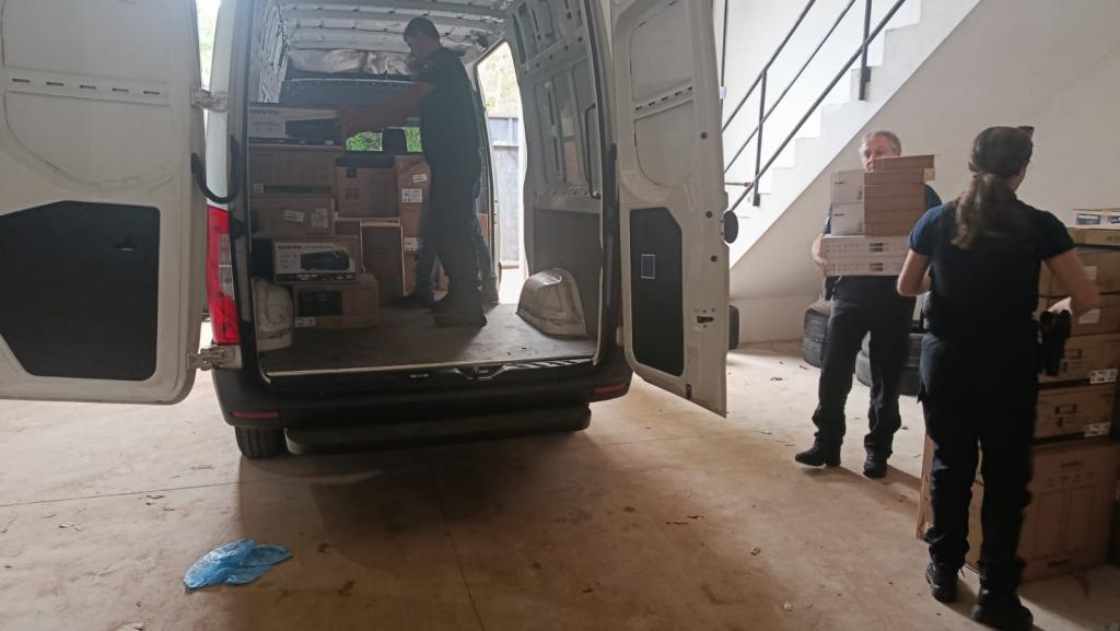 Na manhã desta quinta-feira (16), uma ação conjunta entre o Serviço Reservado da Polícia Militar de Toledo e a Receita Federal de Cascavel resultou na apreensão de um grande volume de produtos eletrônicos contrabandeados. A operação aconteceu em um barracão localizado na Rua Oreste Ruaro, no bairro Morumbi, que era utilizado como depósito para armazenar as mercadorias.