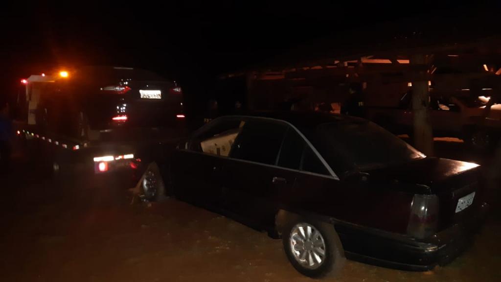 Um outro veículo, uma Fiat Strada que se evadiu por uma estrada rural, ao ser abordado foi identificado como batedor de cargas de cigarro.