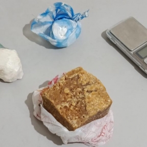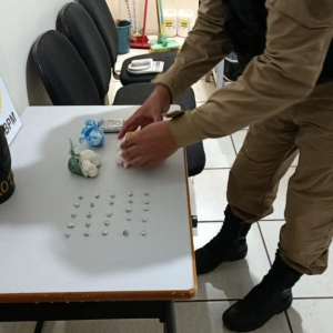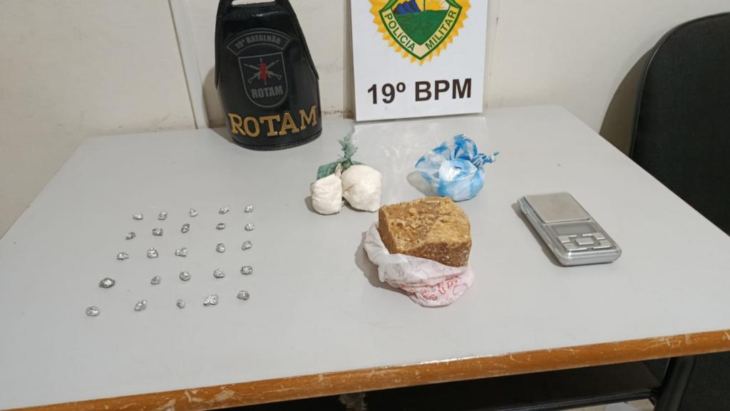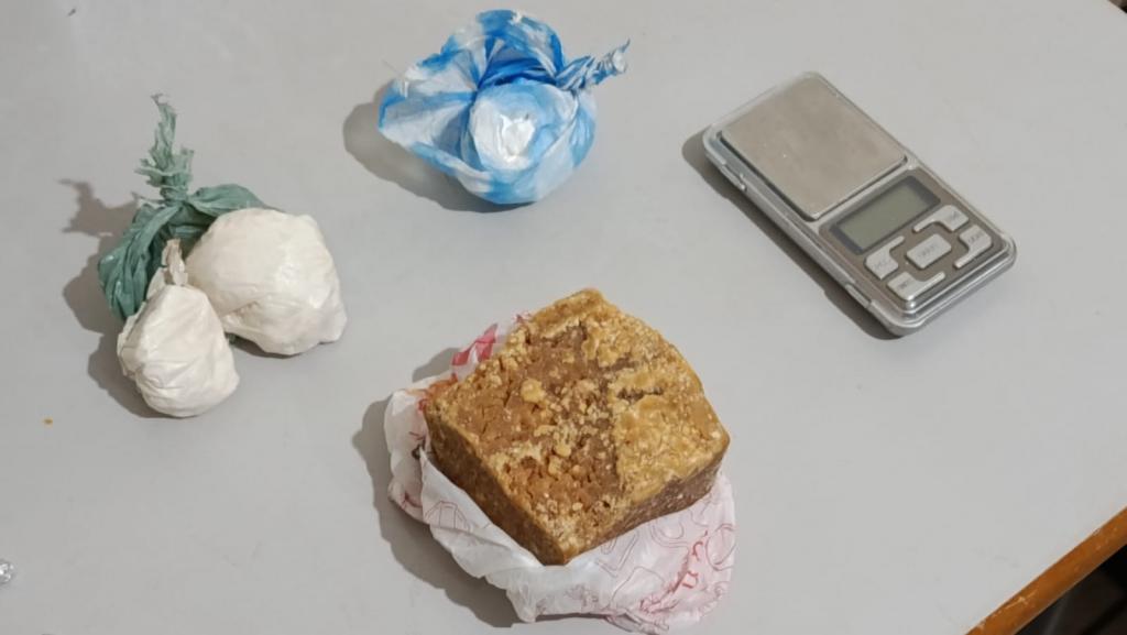 No quarto do morador, de 46 anos, foi encontrada uma sacola contendo uma pedra bruta de crack que, se fracionada, poderia render mais de mil porções. Também foram encontradas porções de cocaína, outras pedras de crack já embaladas para venda e uma balança de precisão.