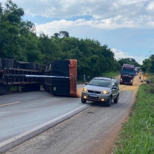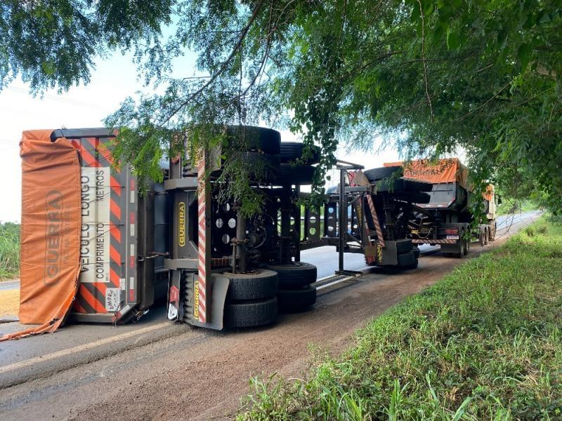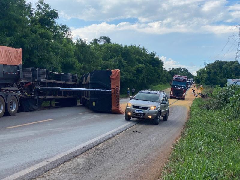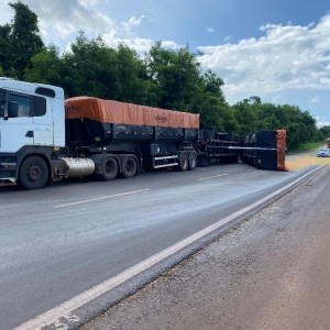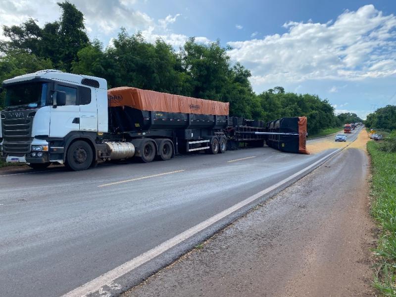 Acidente com carreta bloqueia parcialmente a BR-163 em Mercedes