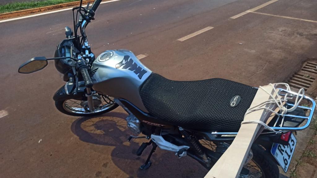 Um acidente entre duas motos foi registrado no início da noite desta sexta-feira na Rua Barão do Rio Branco na região do Loteamento Dúlio e envolveu uma moto Honda CG Titan preta de 160 cilindrada com placa Mercosul conduzida por um homem de 58 anos e uma moto Honda Bros de 150 cilindrada vermelha com placa de Toledo conduzida por um homem de 69 anos.