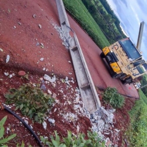 O condutor de uma camionete Hilux SRV preta perdeu o controle da direção e bateu contra um poste na entrada de uma propriedade rural vizinha, o poste ficou caído na via.