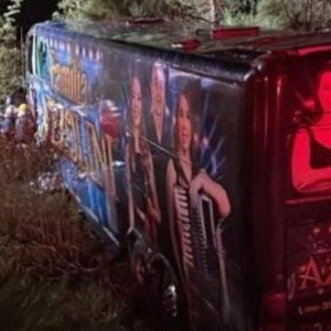 Um acidente envolvendo um ônibus e um carro deixou dois mortos e pelo menos 10 feridos na noite desta terça-feira (13) na PR-280, em Clevelândia (oeste do Paraná). O ônibus envolvido é da banda paranaense Família Azzolini.