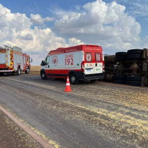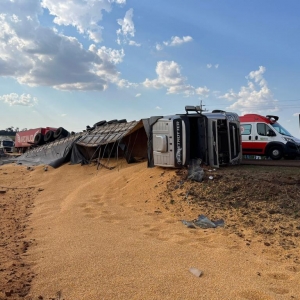 Informações extraoficiais dão conta de que um condutor de uma carreta carregada de milho perdeu o controle da direção do veículo na rodovia PR-182 que liga os munícios de Maripá e Toledo, e ela veio a tombar as margens da via, logo após a primeira curva depois do trevo, à poucos instantes nesta tarde de quarta-feira (20).