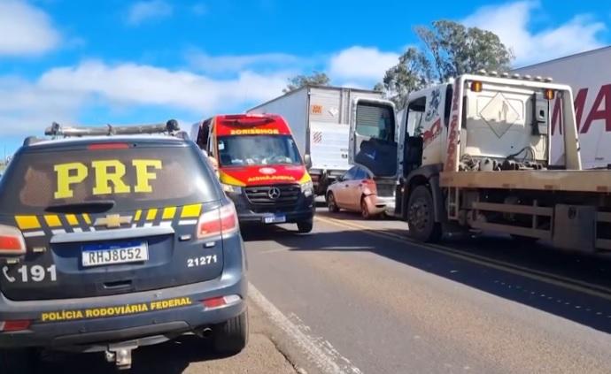 Uma equipe do caminhão ABTR (Auto Bomba Tanque e Resgate) dos Bombeiros e a PRF (Polícia Rodoviária Federal) foram acionadas para prestar apoio e registrar o acidente.