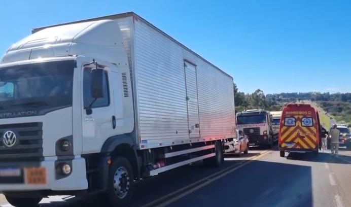 Um acidente envolvendo três caminhões e um veículo Ford Focus, ocorreu nesta quinta-feira (29), na rodovia BR-277, próximo à região do Lago Municipal de Cascavel. O motorista do Ford Focus necessitou de atendimento do Siate, mas recusou encaminhamento médico e foi liberado no local.