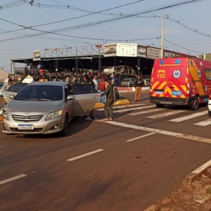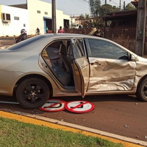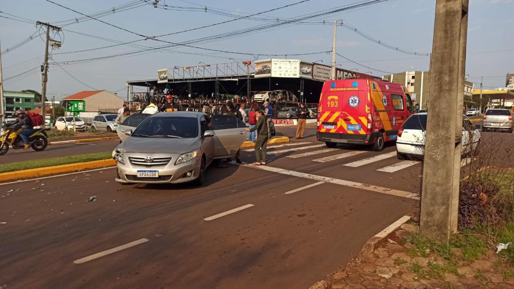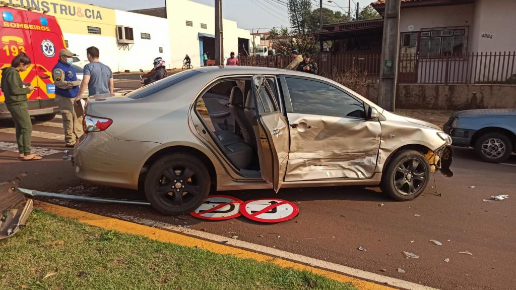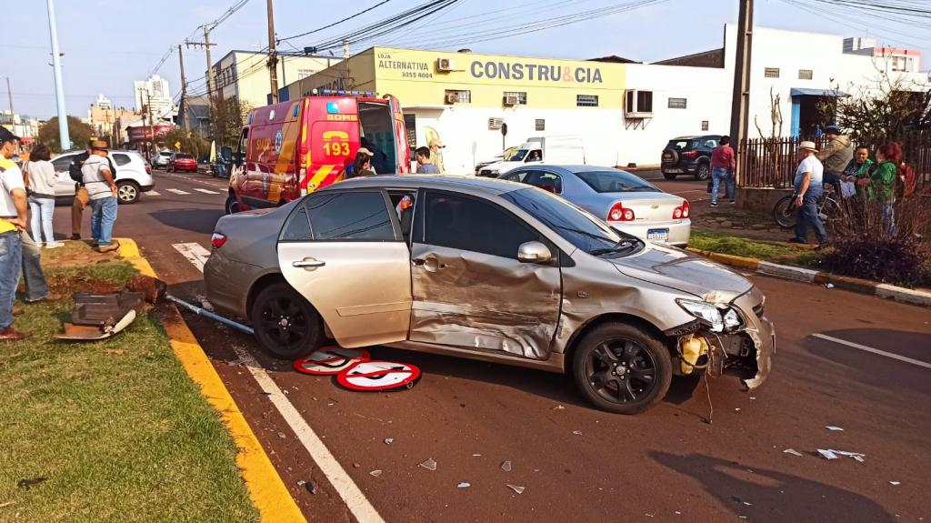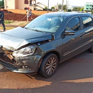 Na manhã de hoje, o veículo Toyota trafegava pela avenida no sentido ao Jardim Europa e o Voyage seguia pela rua Almirante Tamandaré, no cruzamento das vias aconteceu a batida na região central da cidade.